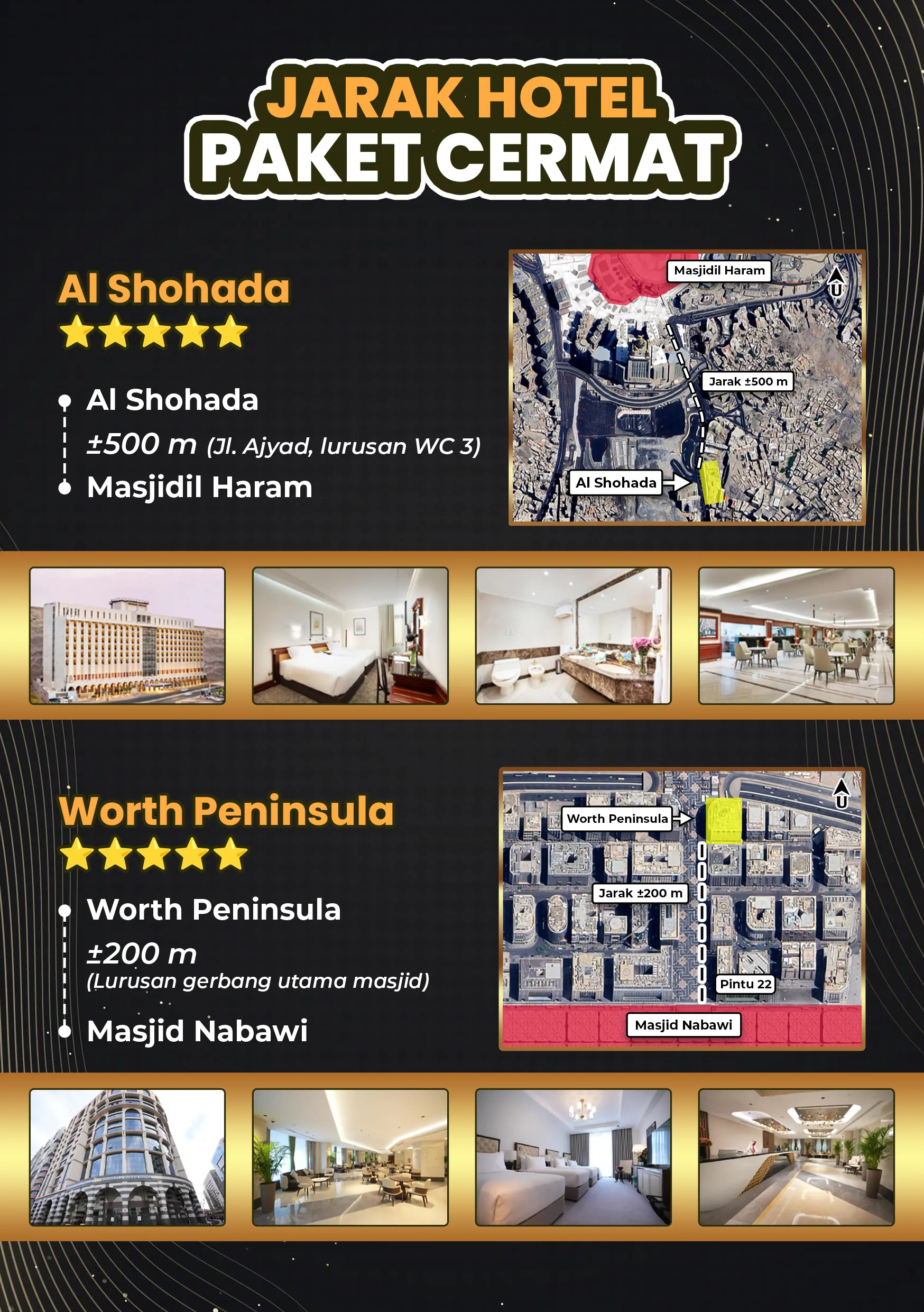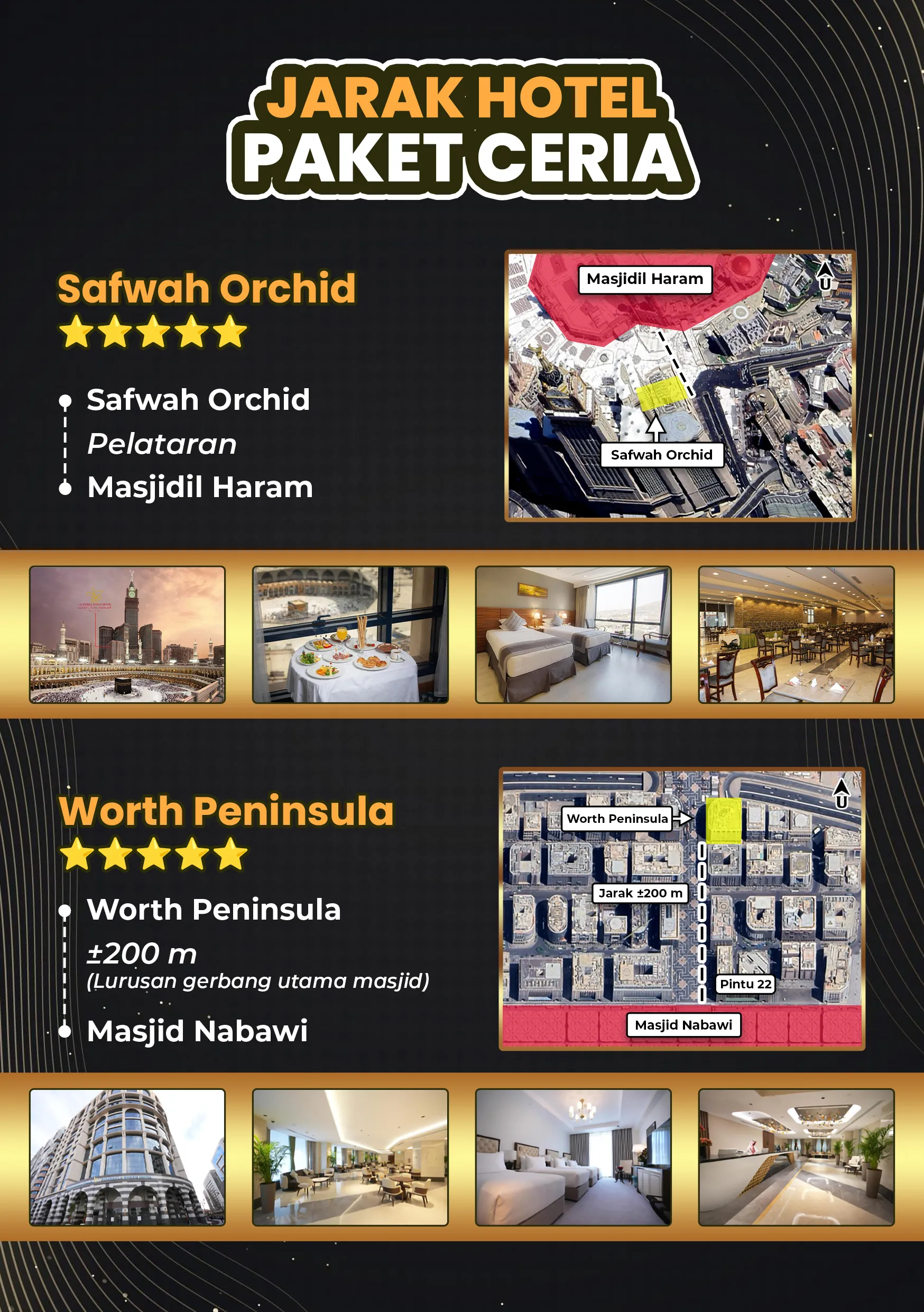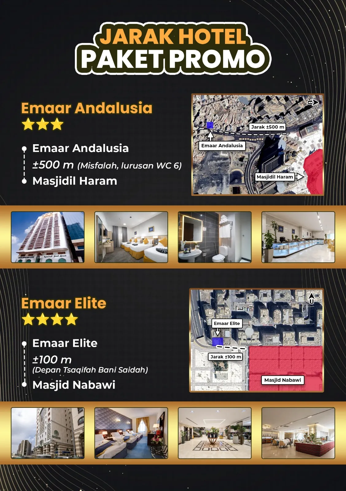 Rasakan kekhusyukan ibadah di Tanah Suci dengan pelayanan hotel dekat jalan kaki pelataran dan pembimbing ibadah berpengalaman.